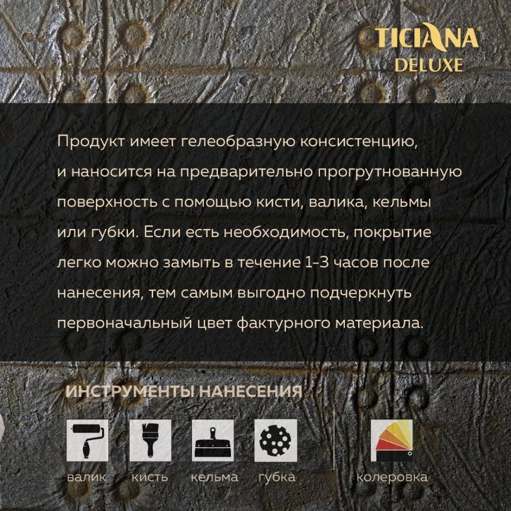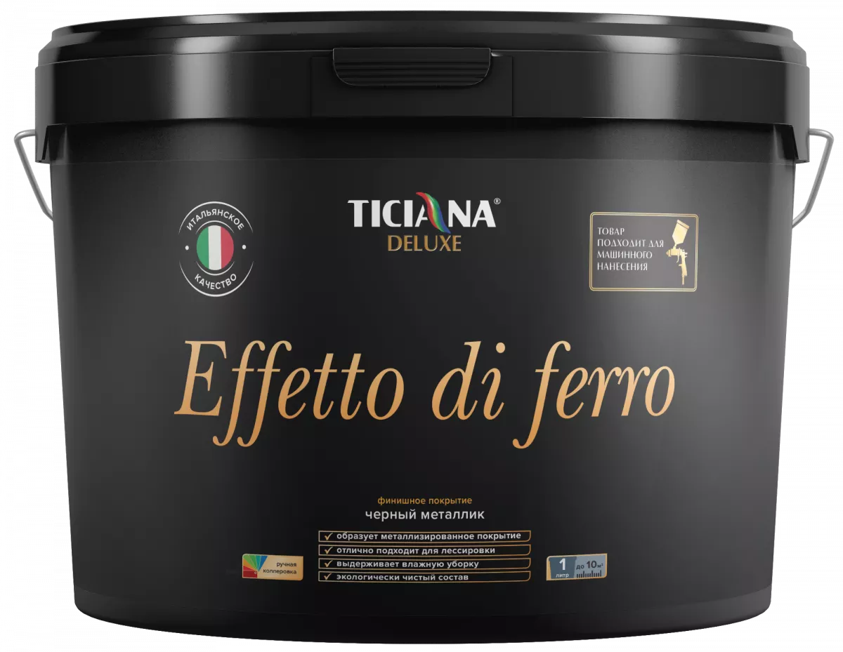 | Элемент каталога | TICIANA DELUXE Effetto di ferro / Тициана Делюкс Эффето ди ферро - Покрытие финишное черный металлик [10884] | |