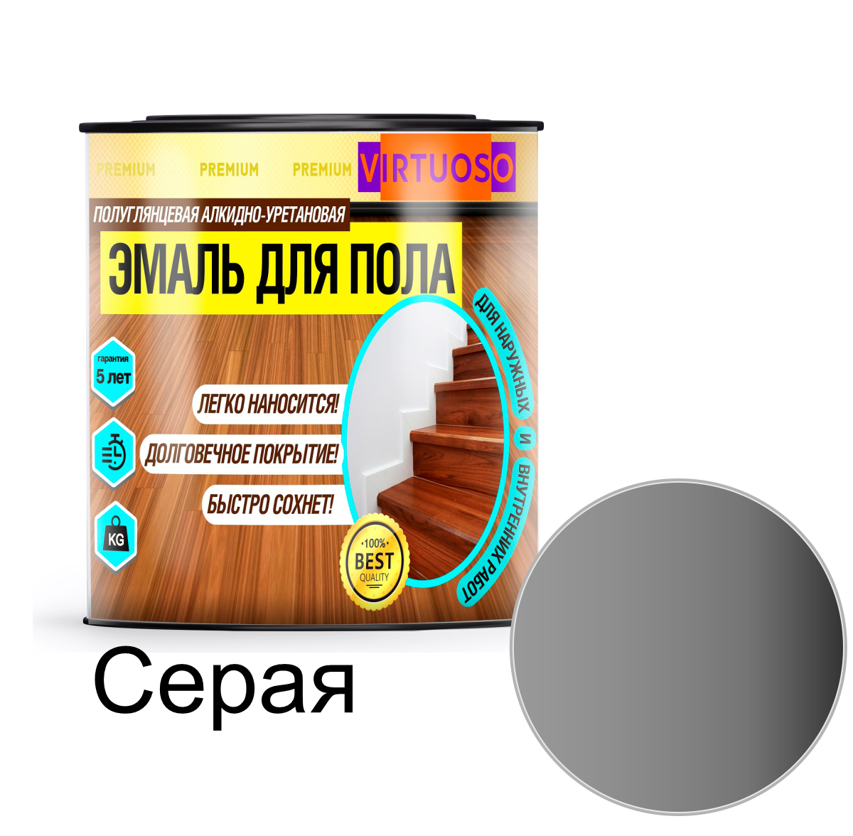 Высококачественная быстросохнущая износостойкая эмаль алкидно-уретановая для пола VIRTUOSO PREMIUM . Подходит для окрашивания поверхностей из дерева и фанеры, а также настилов из древесностружечных и древесноволокнистых листов, также можно окрашивать минеральные поверхности.