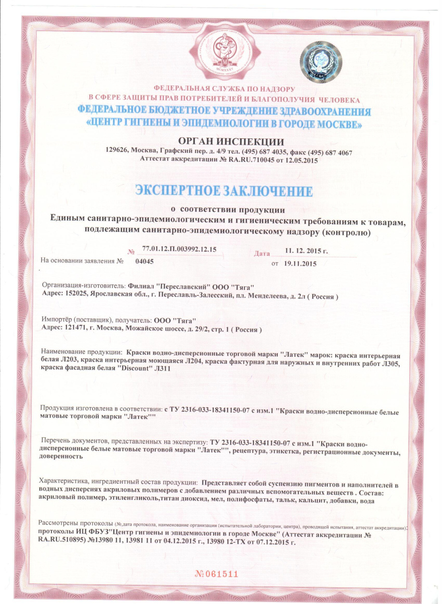 | Элемент каталога | Краска Л204 ЛАТЕК интерьерная моющаяся [6898] | |