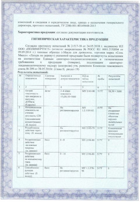 Через 24 часа нанесите повторный слой аналогично первому. Наносить в 1–3 слоя в зависимости от типа и качества обработки древесины. При необходимости колеровки добавьте пигмент «Семь масел». При колеровки первый слой наносится цветной, последний бесцветный. Колерованное масло необходимо перемешивать во время нанесения раз в 5–7 минут. Инструмент очистить раствором тёплой мыльной воды. При нанесении и высыхании масла обеспечьте приток свежего воздуха.