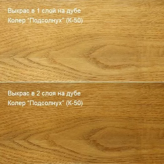 Масло глубоко проникает и подчеркивает натуральную структуру поверхности, создает твердое, износоустойчивое покрытие. Создавая шелковисто-матовую поверхность, масло не образует полимерной пленки, тем самым, дерево продолжает «дышать» после обработки. Колерованное масло наносится одним, либо двойным слоем, а для закрепления эффекта на финишный слой наносится бесцветный.